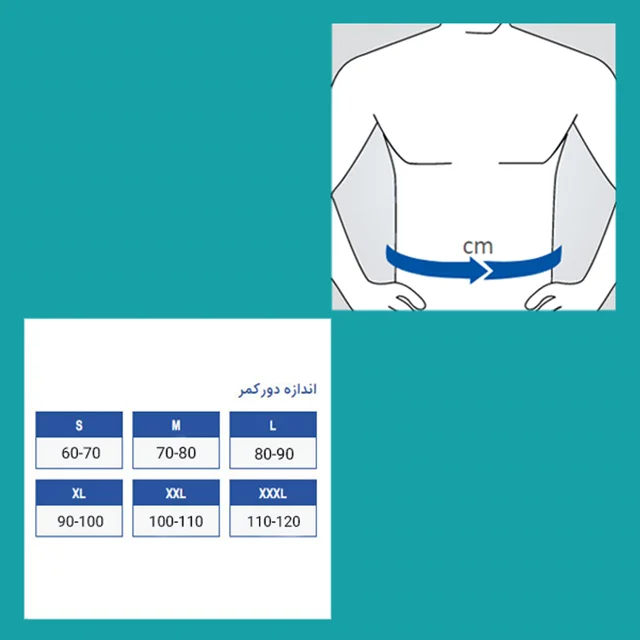 سایز دور کمر: S: 60-70 M: 70-80 L :80-90 XL: 90-100 XXL : 100-110