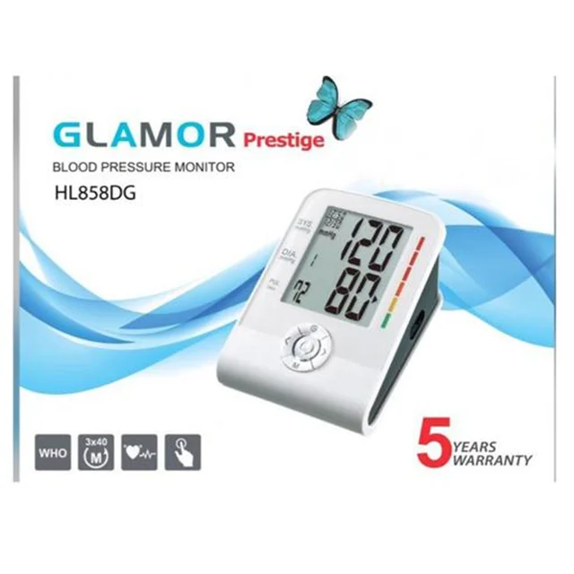داشتن یک فشارسنج با امکانات مناسب برای استفاده خانگی بسیار می تواند برای افرادی که از بیماری فشارخون بالا رنج می برند و به اندازه گیری فشار خون نیاز دارند. میتواند بسیار موثر باشد. فشارسنج بازویی ابزاری که میتواند به خوبی این خواسته را ایفا کند حتی برای افراد مبتدی که بلد نیستند اندازه گیری نمایند. فشارسنج گلامور یک صفحه نمایش است که میتوان از طریق آن میزان ضربان قلب، فشار خون را نمایش می دهد. این دستگاه ۶۰ نتیجه اندازه گیری شده را در خود ذخیره کرده، قابلیت خاموشی خوکار، هشدار خطای محاسباتی، منبع تغذیه فشارسنج دیجیتال بازویی گلامور HL858DG باتری و استفاده برق شهری امکان پذیر است. این محصول قابلیت استفاده در منازل و مطب پزشکان و کلینک ها کاربرد دارد. این فشارسنج دارای دو کاف میباشد.
